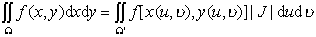 把平面Oxy上的有界闭区域Ω单值映射到平面上的闭区域Ω',其雅可比式为