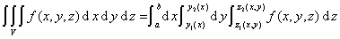 [直角坐标下的三重积分]  假设有界区域V由下列不等式