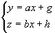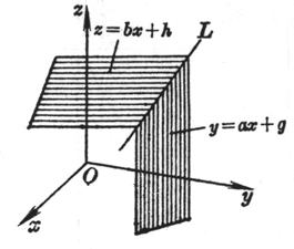 直线Ly = ax+ g z = bx + h两个平面的交线;通过点(0, g, h)且具有方向数1, a, b