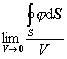 [矢量的体积导数]  如果S是包围体积V的闭曲面,并包含点r,则沿闭曲面S的曲面积分(dS, R·dS, R×dS)与体积V之比,当V趋于零时(即它的直径)的极限称为标量场(或矢量场R)在点r处的体积导数(或空间导数).