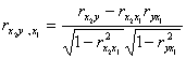 如果只要表示y与其中某一个变量(x1x2)的相关关系,那末必须除去另一个变量的影响之后再计算它们的相关系数,这称为偏相关系数。x1,y在除去x2的影响之后的相关系数称为x1,yx2的偏相关系数,记作,它可用普通的相关系数表示: