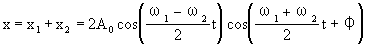 】它是一种重要的振动合成的现象。两个振动方向相同的简谐振动,若它们的频率之和远大于它们的频率之差时,合振动的振幅发生周期性的、明显的变化,这种现象称为“拍”。设有两个频率相近,振幅相等,初位相相同和振动方向相同的谐振动,如下式