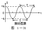 波的图象】在平面直角坐标系中,用横坐标表示在波的传播方向上各个质点的平衡位置与参考原点的距离,用纵坐标表示某一时刻各个质点偏离平衡位置的位移,连接各位移矢量的末端所得到的曲线,就叫“波的图象”也称为波形。利用波的图象,可以形象地反映出通过机械波的媒质区域中,某一时刻每个质点偏离平衡位置的位移对空间的分布规律。由简谐振动在媒质中传播所形成的波——简谐波,在任何时刻的图象都是余弦(或正弦)曲线,而媒质质点的振动图象也是余弦(或正弦)曲线。这两条曲线变化规律相同,但它们的物理意义不同。振动图象的横坐标表示时间,纵坐标表示某一质点在各个时刻的位移;波的图象的横坐标是质点的位置,而纵坐标表示的是某一时刻各个质点的位移。在振动图象中,相邻两个最大值之间的间隔等于周期T。在波的图象中,相邻两个最大值之间的距离等于波长λ。振动曲线是跟踪一个质点标记出它的位移随时间变化的情况,就好像是给该质点拍的“电影”。而波形曲线则是记录了某时刻波线上各点相对平衡位置的位移情况,就好像给波线上全体质点照的一张“像片”。见图1-31和图1-32所示。