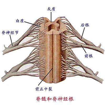 (1)前角:含有前角运动神经元,发出运动纤维,参与前根的组成。