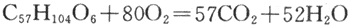 脂肪氧化时需要消耗更多的氧。在脂肪本身的分子结构中,氧的含量远较碳和氢少。因此,另外提供的氧不仅要用氧化脂肪分子中的碳,还要用来氧化其中的氢。所以脂肪的呼吸商将小于1。现以甘油三酸酯(triolein)为例: