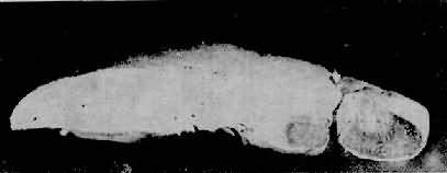 图10-32 肠梗死 梗死区略呈长方形,色深,被膜下肝组织未发生梗死 (二)肝静脉阻塞 肝静脉阻塞一般分为二类。一类为肝静脉干至下腔静脉的阻塞,称Budd-Chiari综合征;另一类为肝内肝静脉小分支阻塞,称肝小静脉闭塞症(veno-occlusive disease)。 Budd-Chiari综合征是指肝静脉干和(或)下腔静脉的肝静脉入口处有一段完全或不完全阻塞而引起的征候群。本综合征的病因有原发及继发二种。原发性者主要是先天性血管异常,如下腔静脉膜性阻塞所致的肝静脉阻塞。继发性者可由血液凝固性积升高疾病(如红细胞增多症),肝癌及腹腔肿瘤,腹部创伤及某些口服避孕药等引起的该段静脉血栓形成所致。病理变化主要为肝淤血,肝细胞萎缩、变性以至坏死。此外,还有肝出血,即淤于肝窦内的红细胞进入窦外压力较低的Disse腔及萎缩的肝板内。慢性病例则发展为淤血性肝硬变。