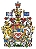 图案中间为盾形,盾面下部为一枝三片枫叶;上部的四组图案分别为:三头金色的狮子,一头直立的红狮,一把竖琴和三朵百合花,分别象征加拿大在历史上与英格兰、苏格兰、爱尔兰和法国之间的联系。盾徽之上有一头狮子举着一片红枫叶,既是加拿大民族的象征,也表示对第一次世界大战期间加拿大牺牲者的悼念。狮子之上为一顶金色的王冠,象征英女王是加拿大的国家元首。盾形左侧的狮子举着一面联合王国的国旗,右侧的独角兽举着一面原法国的百合花旗。底端的绶带上用拉丁文写着“从海洋到海洋”,表示加拿大的地理位置——西濒太平洋,东临大西洋。