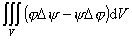 式中S为空间区域V的边界曲面,为两个标函数,在S上具有连续偏导数,且在V上具有二阶连续偏导数,为拉普拉斯算子,特别