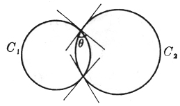 式中q表示两个圆C1C2的交角,因为公式中不包含交点的坐标,所以在两交点的两交角必相等.
