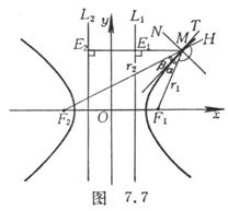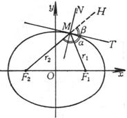 式中r1, r2为焦点半径,p为焦点参数,a为点M(x, y)的焦点半径与切线的夹角,特别,顶点A, B的曲率半径