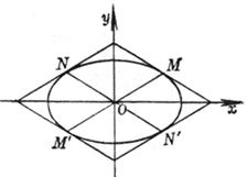 7°  MM¢, NN¢为双曲线的两共轭直径,通过M, M¢分别作直线平行于NN¢;又通过N, N¢分别作直线平行于MM¢,则这四条直线构成的平行四边形的面积为一常数4ab(7.10).