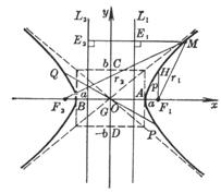 6°  双曲线上任一点M的焦点半径之积等于它的对应半共轭直径的平方.
