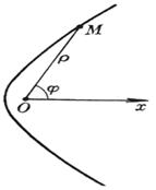 (极坐标方程,极点位于焦点F上,极轴与抛物线的轴重合,背向顶点)
