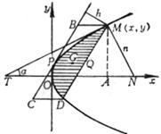 式中a为点M(x, y)的切线与主轴的夹角,n为法线MN之长.特别,顶点的曲率半径R0 = p
