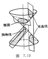 二次曲线都是用平面切割正圆锥面的截线.因此二次曲线也称为圆锥截线(图7.13