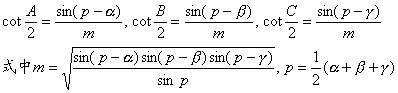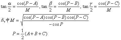 计算时,应尽量利用含未知元素的正切(或余切)的公式,应避免采用正弦的公式,计算结果可代入正弦定理公式进行验算.