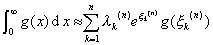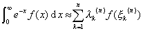 0.49647 75975 1.17764 30609 1.91824 97817 2.77184 86362 3.84124 91225 5.38067 82079 8.40543 24868  |