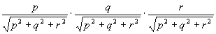 [方向数] 通过原点且平行于直线L的直线OM上任意一点W的坐标(p, q, r)称为直线L的方向数,而