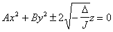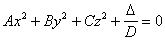 A,B,C, 同号时为椭球面 A,B,C, 异号时为双叶双曲面  |