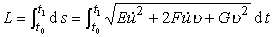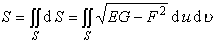 ds2=Edx22fdxdy+Gdy2 式中    E=1+    F=    G=1+ ds为点M(x,y,z)处的弧的微分,ds2称为第一基本二次型,E,F,G称为第一基本量    ds2= 式中 E= F= G= 第一基本量E,F,G都在点M处取值. 曲面上每点(奇点除外)的第一基本二次型是正定的,即 E>0,G>0,EG-F2>0  |