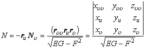 式中E,F,G为曲面的第一基本量,L,M,N为曲面的第二基本量。