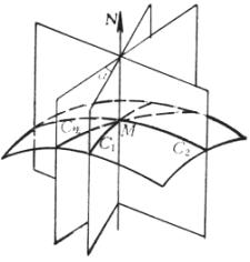 )都称为点M的法截线。所以通过曲面上一点的法截线有无穷多条,给定点M的一个切线方向就有一条确定的法截线。在点M的法截线中曲率最大和最小的两条分别记为