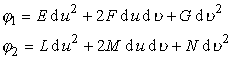式中E,F,G和L,M,N分别为曲面的第一和第二基本量;六个系数