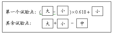 是指中间已经做过的试验点,而不是中点,缩短搜索区间的办法和分数法一样。