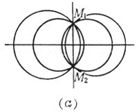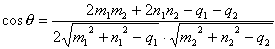 式中q 表示两个圆C1和C2的交角,因为公式中不包含交点的坐标,所以在两交点的两交角必相等. 两个圆C1和C2正交条件为 2m1m2 + 2n1n2 - q1 - q2 = 0