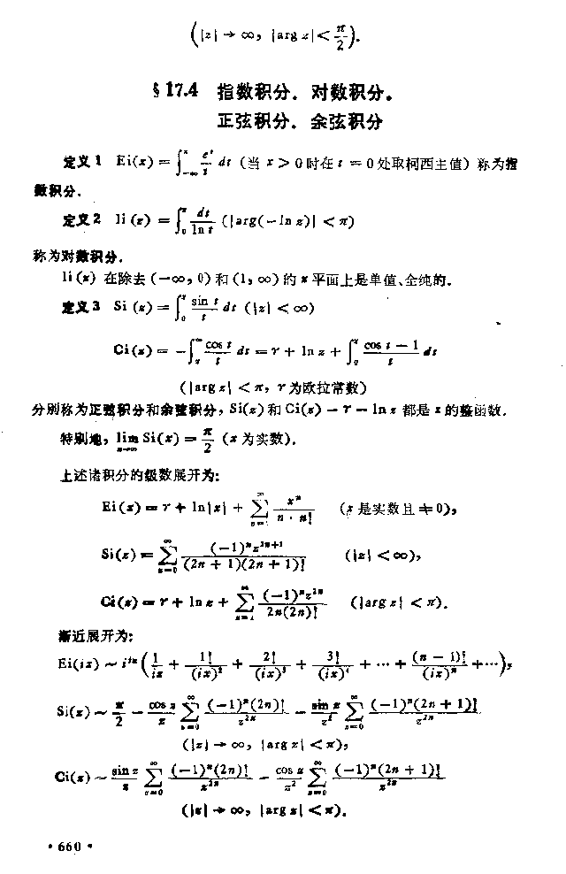 17·4 指数积分.对数积分.正弦积分.余弦积分