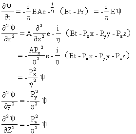用上述与能量和动量相对应的算符代替E和P,并在等式两边乘上粒子的波函数ψ(r,t)便得到