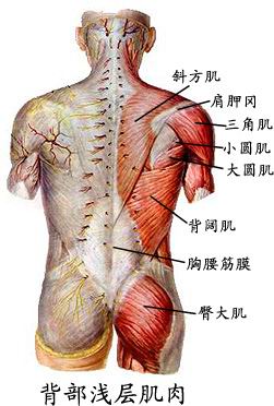 For the item of back triangle flat muscle, affects in the shoulder blade. The myo- contraction may cause the shoulder blade completely to the spinal column stem for stem.