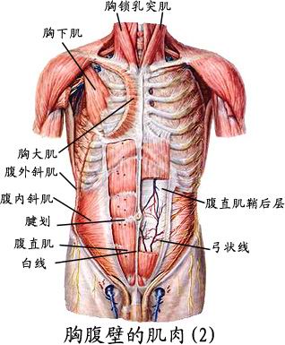 The intercostal muscle, shouts the inspiration    Abdomen front board, abdomen musculus rectus