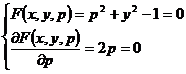 [ p - discriminant curve method ] For a first-order differential equation  , let , then the singular solution of the equation must be included in the following equations
