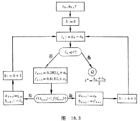 If you want to limit the number of tests on the definition interval of the function to find the optimal point, you can divide the interval into equal parts, take the first test point at , and use the method of finding a symmetrical point ( symmetrical about the midpoint of the interval ) for subsequent test points ( Figure 18. 1) , a total of tests were done,