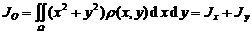 [ Moment of inertia of thin plate ]  Let the density of thin plate Ω in the Oxy plane be ρ = ρ ( x,y ) , for the x - axis and y -axis, the moment of inertia of the origin O is respectively , then