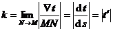 k represents the degree to which the partial curve including the point M deviates from the straight line, and is also the rotation rate of the tangential direction to the arc length |