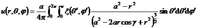 2 ° For a sphere (the center of the sphere is O and the radius is a ), the basic solution for u = 0 is , r is the distance between P ( x , y, z ) and the parameter point M ( , , ) , and M is about the sphere. Invert the point M 1 , record r 1 as the distance between M 1 and P , then the Green's function is ![]()