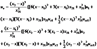 (15) or ( 17 ) represent the correspondence between the node parameter values ​​of u and the coefficients of the interpolation polynomial, and there are similar relational expressions for the undetermined functions v and w . If written in vector form, the interpolation polynomial is