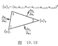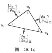 From the inverse transformation matrix of the § 2 triangular element, the value of the outer normal derivative on each side can be obtained