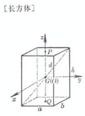 volume surface area side area diagonal The center of gravity G is at the intersection of the diagonals volume surface area side area diagonal The center of gravity G is at the intersection of the diagonals Moment of inertia Take the center of the cuboid as the origin of the coordinates , and the coordinates The axis is parallel to the three edges ( At that time , it was the case of a cube ) |