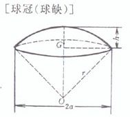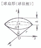 volume surface area side area center of gravity Moment of inertia Take the center of the ball O as the origin of the coordinates , and the z - axis coincides with GO volume surface area Side area ( cone surface part ) center of gravity Moment of inertia z -axis coincides with GO volume
