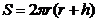 r, R are the upper and lower base circle radius , h is the height , l is the busbar