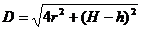 r is the radius of the base circle , h, H are the minimum and maximum heights , respectively, |