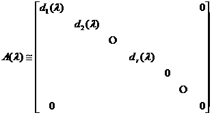 [ Standard form of λ matrix ] Let the rank of the λ matrix be r and the invariant factor be , then