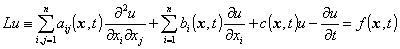 式中aij(x,t),bi(x,t),c(x,t),f(x,t)在