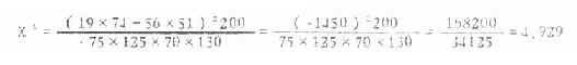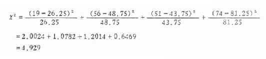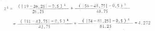 现用公式(3.5)及式(3.6)分别计算χ2值如下: