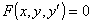 [p-判别曲线法]  对于一阶微分方程,令,那末方程的奇解一定包含在下面方程组